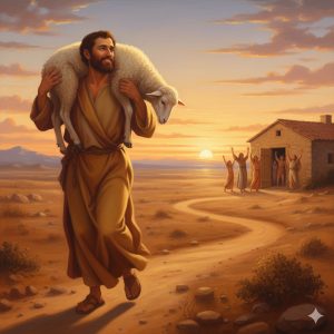 A ovelha desgarrada representa o ser humano que se afasta de Deus. O pastor abandona as noventa e nove no deserto para resgatar uma única. Seu gesto de carregá-la nos ombros revela não apenas perdão, mas restauração digna. A mulher que varre a casa para achar a moeda (equivalente a um dia de salário) mostra que nada, por menor que pareça, é insignificante aos olhos divinos.