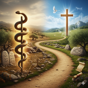 • A Serpente de Bronze: É o símbolo mais proeminente. No Livro dos Números, ela era um instrumento de cura para o povo de Israel. Espiritualmente, ela é uma prefiguração da Cruz de Cristo, como o próprio Jesus menciona em João 3:14. Assim como olhar para a serpente trazia a cura física, olhar para a Cruz com fé traz a salvação e a cura espiritual.