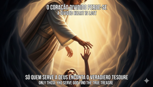• O Céu e a natureza: A cena desenrola   um céu com raios e nuvens tempestuosas, mas a área ao redor da criança, do santo e do coração está iluminada e repleta de flores. Isso pode simbolizar que, mesmo em meio às tempestades e desafios da vida (o mundo exterior), a Palavra de Deus traz luz, vida e paz interior.