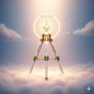 • A Cruz: A Cruz é o ponto culminante do caminho e o símbolo central da fé cristã. Ela representa o sacrifício de Jesus, a vitória sobre a morte e a promessa de vida eterna. A luz brilhante que a envolve simboliza a Ressurreição.