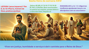 “Senhor, livra-me da tentação da crítica e do julgamento. Ensina-me a reconhecer-te nas pessoas, nas situações, nos sinais inesperados do teu amor. Dá-me a coragem de acolher a tua Palavra e de deixar que ela transforme a minha vida.”