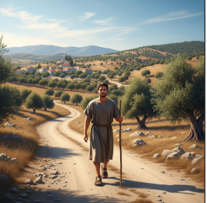 • A Estrada: O caminho sinuoso que atravessa a imagem é o elemento central. Ele representa a própria jornada da fé e a continuidade do plano de Deus ao longo da história, conectando as promessas antigas à sua realização.